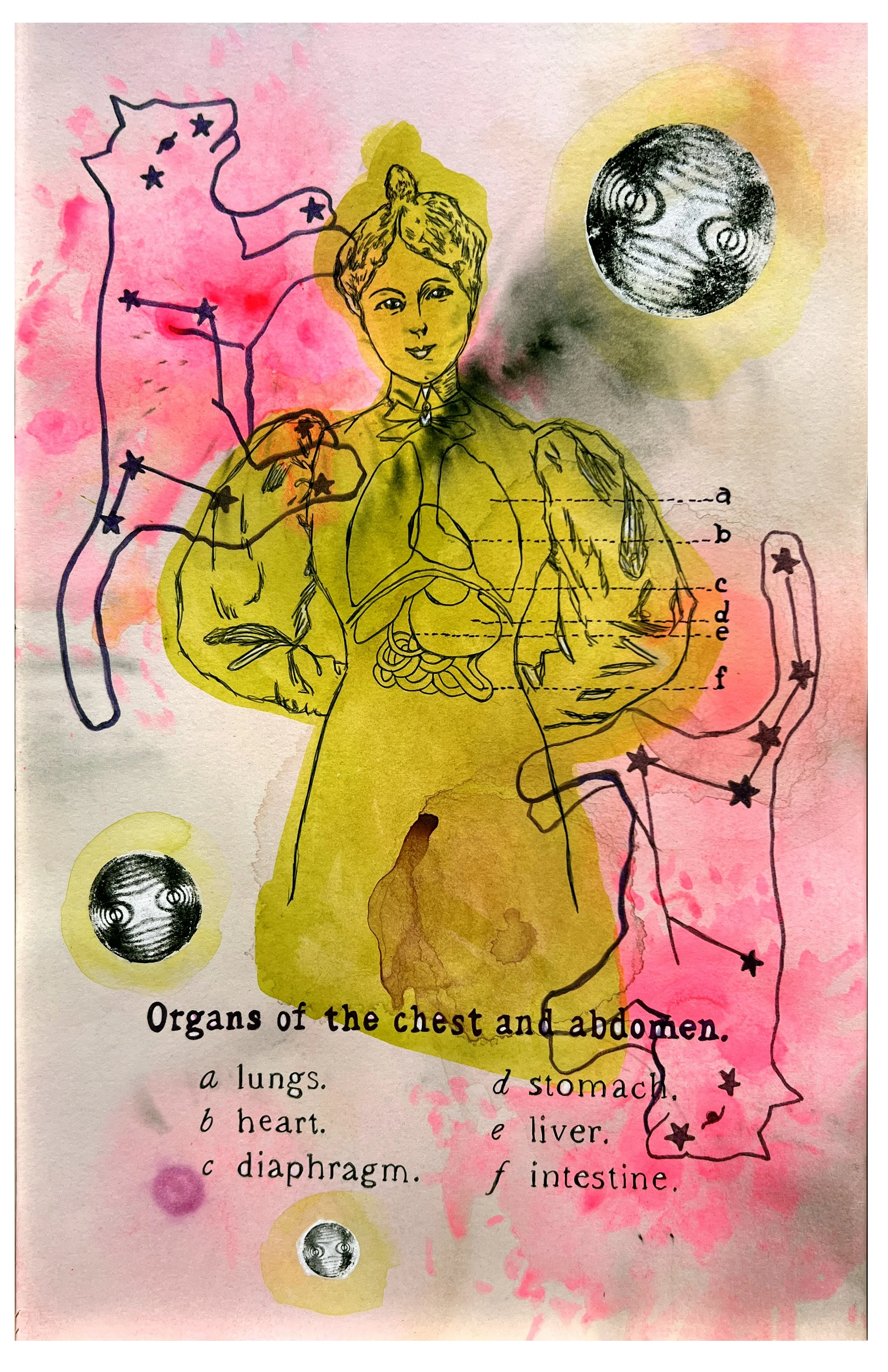 Acrylic, watercolor, and transfer print on watercolor paper. Poplar frame. 13 x 21”.